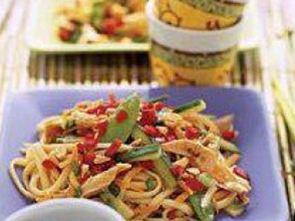 Салата с пиле и нудълс е доста подходящ вариант, при това за цялото семейство.