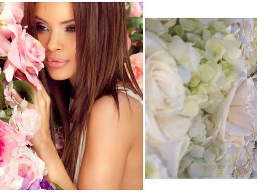 Сесията на Мария бе сред стена от рози, пред която тя позира с бяла ефирна рокля. Подобни са и кадрите, които Кардашиян сподели наскоро с феновете си в социалната мрежа.