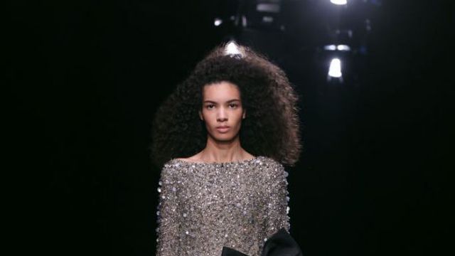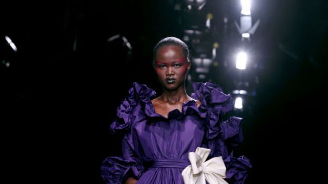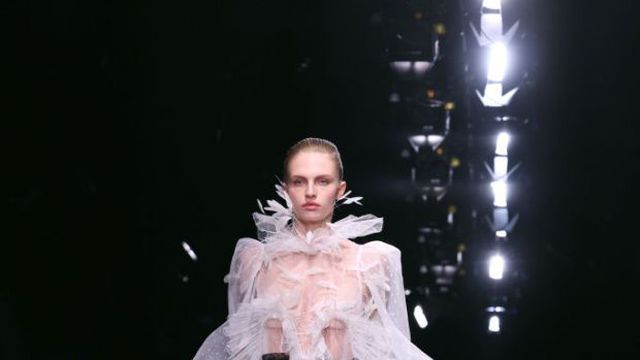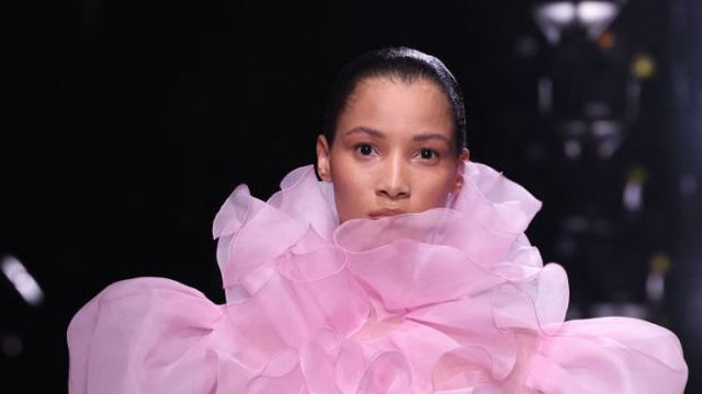 Главната роля бе дадена и на мъжките костюми в изумрудено зелено, жълто, електриково синьо, а някои от саката бяха покрити с метални мъниста. Видяхме и класическата пищност и характерна драпировка в стил Валентино Гаравани от 1980 г. във формата на гигантски лавандулови или бели волани, които се извиваха около лицето или едното рамо на моделите, както и големи пандели, украсяващи бедрата.
