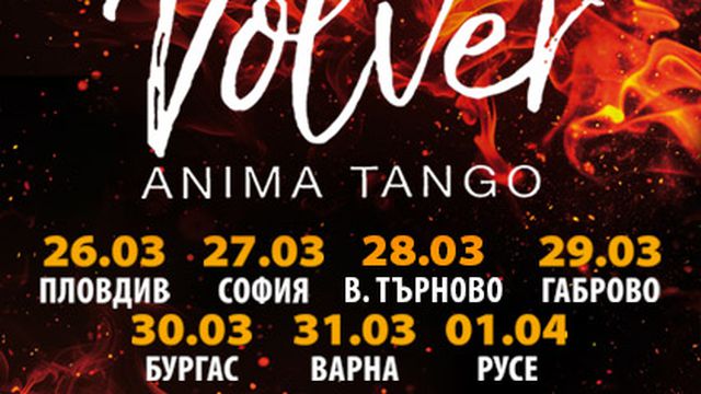 Един зрелищен танго-спектакъл предстои в цялата страна. Пласидо Доминго-син в своето шоу „Volver – Anima Tango”. Едно чувствено съчетание от музика, театър и танц ще завладеят публиката от 26 март всяки вечер на сцените от Пловдив, София, Велико Търново, Габрово, Бургас, Варна и Русе.