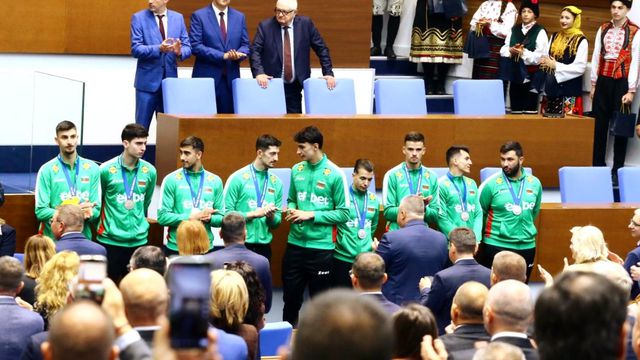 След кратка почивка от срещата с президента Радев, волейболистите се отправиха към Народното събрание, където бяха посрещнати с пламенни овации и почерпка по стар обичай от хляб и сол.