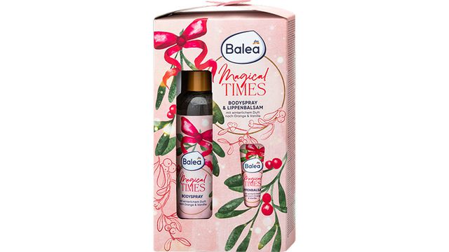 Студените зимни дни, които предстоят, изискват специална грижа за кожата и устните, а комплектът Magical Times от Balea е отговорът на тази нужда. Той съдържа ароматен спрей за тяло и балсам за устни и носи зимната топлина на портокал и ванилия във всеки момент от деня. Балсамът предпазва устните от напукване и изсушаване, докато спреят придава деликатен аромат, който създава усещане за уют. Продуктът е с веган формула без водоразтворими синтетични полимери, а това го прави подходящ избор за хора, които ценят природосъобразните продукти. Комплектът е перфектен избор за изненада на приятелка или като награда за себе си след дългите работни дни.