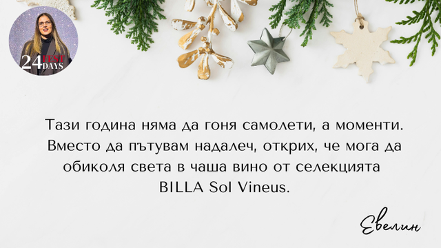 Хайде зедно да се потопим в магията на Коледа! Всичко, от което се нуждаем за нашето пътешествие е малко въображение и бутилка вино от BILLA Sol Vineus.