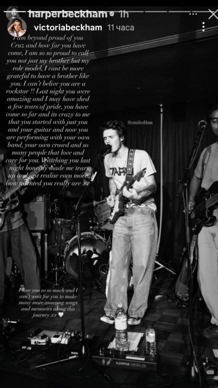 Гордата им майка, Виктория Бекъм, сподели емоционалното послание на 14-годишната Харпър към нейния 20-годишен брат, в което тя разказва за музикалния му път – от упражненията с китара до създаването на собствена група.