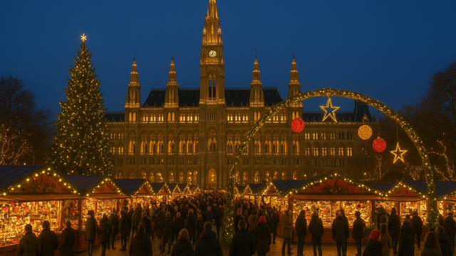 Макар и известна със своята класическа музика и величие, зимната магия на Виена се крие в нейните безбройни и великолепни коледни базари. Градът е домакин на над 20 различни сезонни пазара, като най-големият и известен е „Кристкиндлмаркт“ на площад „Ратхаусплац“, разположен пред кметството. Други забележителни места включват базарите пред двореца Шьонбрун и двореца Белведере. Сред основните атракции са ледените пързалки, виещи се през парка около базара на „Ратхаусплац“, и дегустацията на австрийски кулинарни класики като картофени палачинки и топъл пунш. Виена предоставя изискан фон за Коледа в Европа.