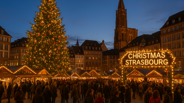 Страсбург носи официалната титла „Коледна столица“ и е домакин на един от най-старите и големи коледни базари на континента. От 26 ноември до 24 декември 2025 г. градските площади, начело с централния площад „Клебер“ и неговото гигантско осветено дърво, оживяват с щандове, прочути с автентични ръчно изработени дървени играчки. Изживяването се допълва от дегустация на регионални специалитети като бисквити „бределе“ и „фламенкухе“.