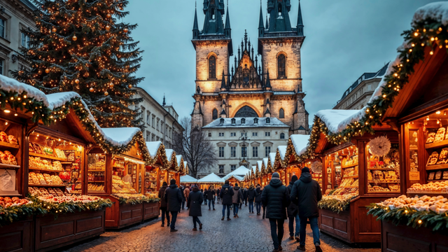 Средновековният Староместки площад в Прага предлага една от най-впечатляващите обстановки за коледни празненства сред най-добрите зимни дестинации в Европа. Основният базар се провежда от 29 ноември 2025 г. до 6 януари 2026 г. на Староместкия площад, доминиран от голяма коледна елха и готическата църква „Дева Мария пред Тин“. Щандовете, често оформени като малки дървени къщички, продават ръчно резбовани дървени играчки и ароматни свещи.
