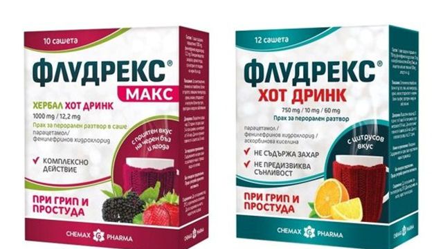 Двата лекарствени продукта се предлагат в удобни сашета за разтваряне в топла напитка - лекарствена форма, която прави приема приятен и спомага за по-лесното усвояване на активните съставки. Едно от значимите предимства на Флудрекс Хот Дринк и Флудрекс Макс Хербал е, че употребата им не предизвиква сънливост. Това е изключително важно за хората, които въпреки неразположението си имат ангажименти, които не могат да бъдат отлагани.