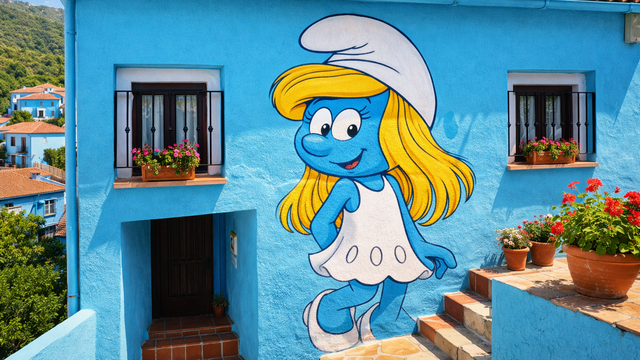 Всичко се променя, когато през 2011 г. продуцентската компания Sony Pictures избира именно него за промоцията на филма си за смърфовете. Идеята е била да се създаде реално „село на смърфовете“, като за целта всички къщи са боядисани в характерния син цвят. Първоначалният план предвиждал след края на рекламната кампания фасадите да бъдат върнати към оригиналния си бял вид.