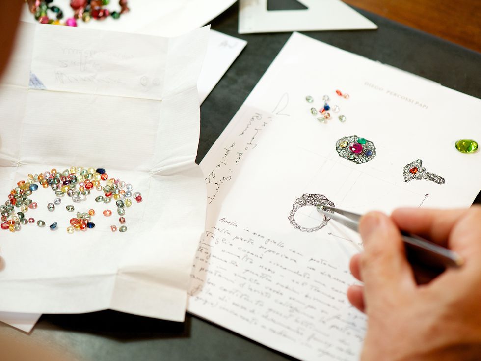 В малко ателие до Пантеона, в сърцето на древен Рим, времето отдавна е избрало да тече по различен начин. Там светът се мери не в сезони и тенденции, а в милиметри емайл, в блясък на турмалин и в истории, разказани върху метал. Представете си хартиени пакетчета, пълни с камъни като скъпоценни бонбони, баща, който се прибира у дома и отваря „съкровище“ на масата, и деца, които слушат приказки за богове, герои и митове, докато цветовете тихо си намират път към въображението им. Така започва Percossi Papi – не просто като бижутерско ателие, а като малка вселена, в която всяко украшение е фрагмент от по-голям разказ.