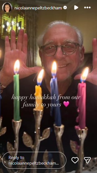 След като Бруклин спря да следва семейството си през уикенда, съпругата му Никола се завърна в Instagram с публикация, която изглеждаше като язвителен коментар. Тя сподели снимка на баща си, милиардера Нелсън Пелц, който изглежда щастлив зад четири цветни свещи, с посланието: „Честита Ханука от нашето семейство на вашето.“