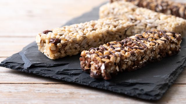 2. С помощта на лъжица залейте барчетата с разтопения шоколад, поръсете с предварително нарязаните ядки, оставете шоколада да стегне.