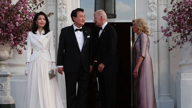 Например, появата на първата дама на 27 април 2023 г. в Белия дом остави незабравимо впечатление и подчерта безупречния вкус на Ким Кун Хи. Строгото, но нетипично бяло сако с прихлупване, белите ръкавици и полата в същия цвят, съчетани с блестящ сребърен клъч, изглеждаха елегантно и най-вече – напълно уместно за събитието, на което беше поканена президентската двойка.