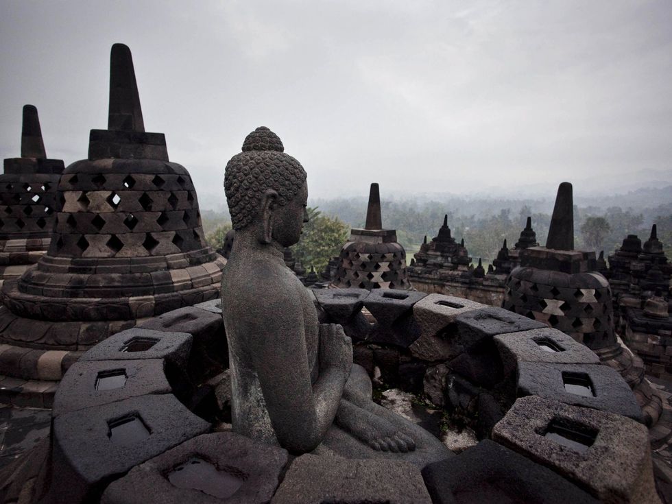 Храмът Боробудур е най‑големият будистки храм в света – не само в размери, но и като обем на релефите, символиката и духовното си послание. Той е построен като огромна стъпаловидна структура, съставена от девет нива – шест квадратни основи и три кръгли тераси, а на върха стои голяма централна ступа, която е символ на просветлението.