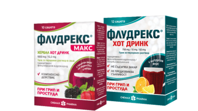 Флудрекс е именно такова решение – благодарение на комбинирания си състав продуктът ефективно овладява температурата и болката, намалява секрецията от носа, отбъбва лигавицата на дихателните пътища и облекчава затрудненото дишане при простуда и грип. Благодарение на формата си на топла напитка, Флудрекс осигурява не само бързо действие на активните съставки, но и допълнителния комфорт на топлината и хидратацията: топлата течност носи незабавно усещане за облекчение, успокоява гърлото и овлажнява дихателните пътища. Важно предимство е, че не предизвиква сънливост, което позволява да продължите с ежедневните си ангажименти без да се чувствате замаяни или изтощени.