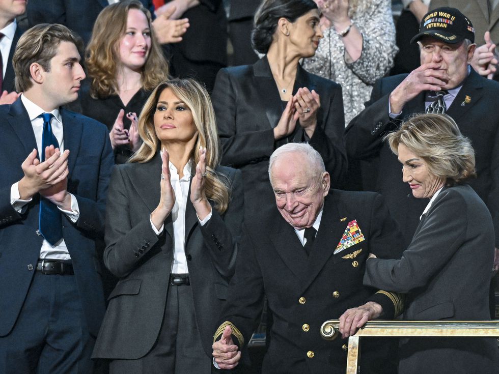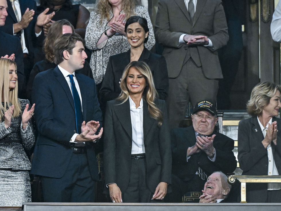 Мелания Тръмп за пореден път показа безупречен стил по време на речта на съпруга си Доналд Тръмп за състоянието на Съюза по време на съвместна сесия на Конгреса на 24 февруари 2026 г. във Вашингтон.
