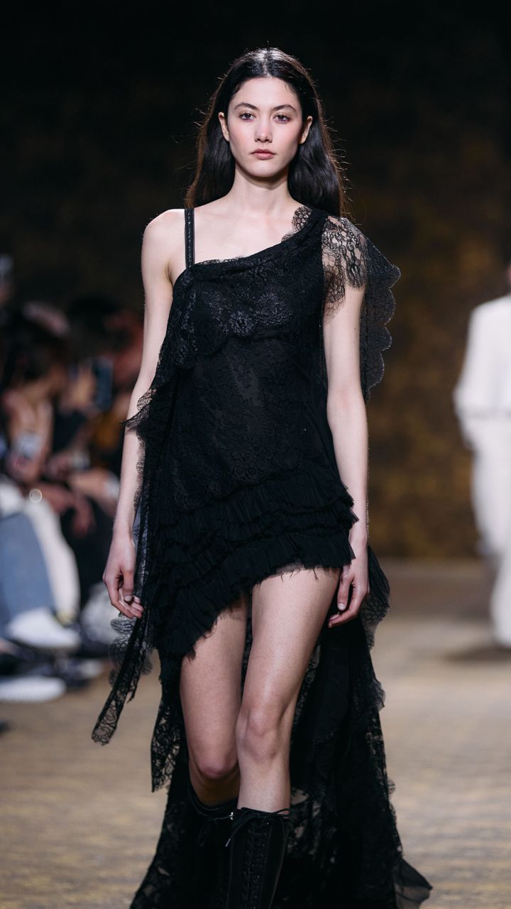 Saint Laurent предложи многослойна дантела не като детайл, а като основа на визията. През сезон есен 2026 дантелата не е ограничена до вечерните излизания. Още сега можете да носите дантелен топ под строго сако, а дантелена пола се съчетава чудесно с груби боти, именно тези контрасти създават необходимото напрежение във визията. Колкото по-неочаквана е комбинацията, толкова по-интересен е резултатът.