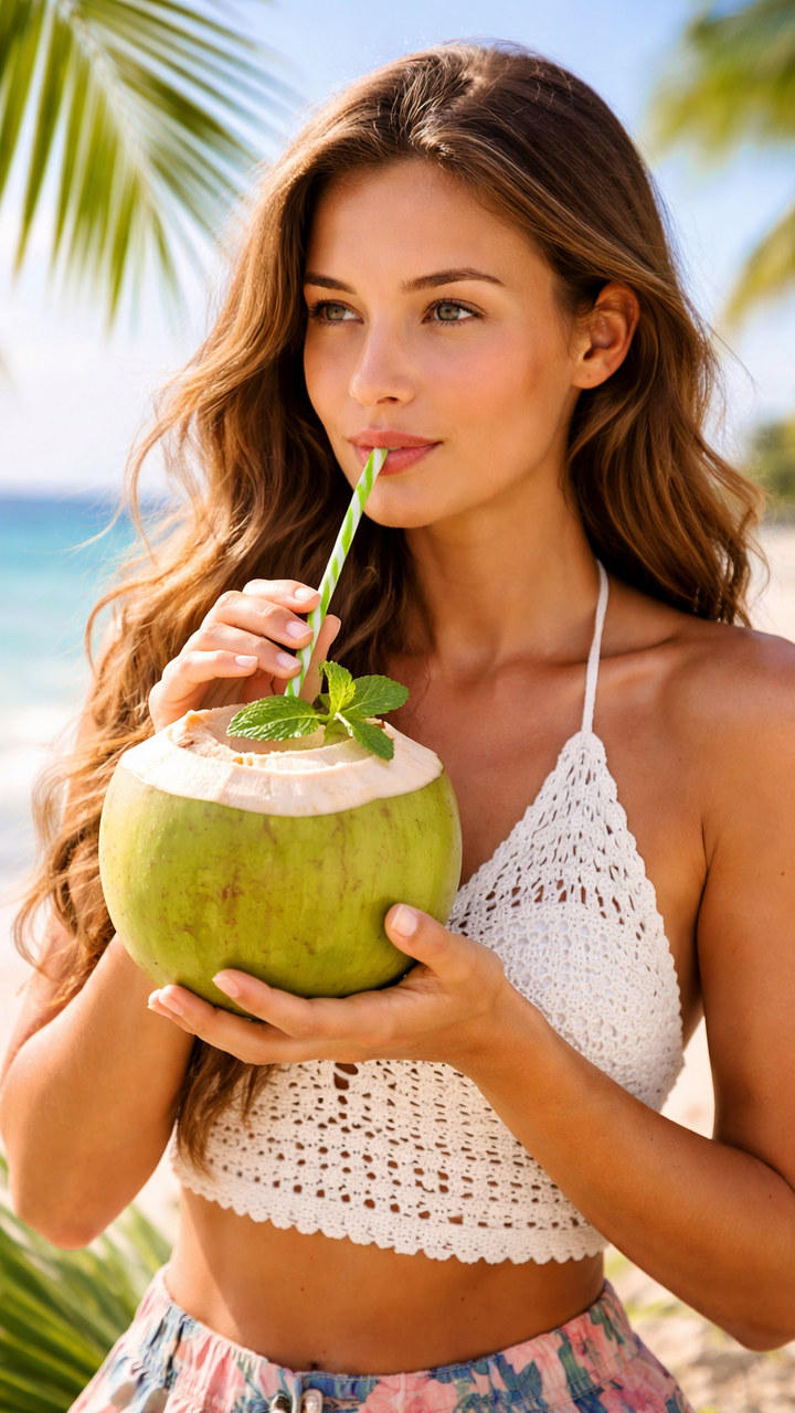 Красива кожа и коса. Витамините от група B и витамин C, съдържащи се в кокосовата вода, допринасят за здравия вид на кожата и косата. Редовната консумация помага за поддържането на еластичността на кожата и за стимулиране растежа на здрава коса. Не е случайно, че много козметични продукти включват екстракт от кокосова вода в своите формули.