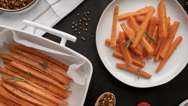 Оранжевите зеленчуци съдържат бета-каротин, който организмът превръща във витамин А. Той е важен за защита на кожата и лигавиците. Нарежете моркови на пръчици - така детето може да си хрупа постоянно. Сладките картофи може да направите на пюре, да използвате за блат на здравословна пица или дори да направите здравословен крем с какао.