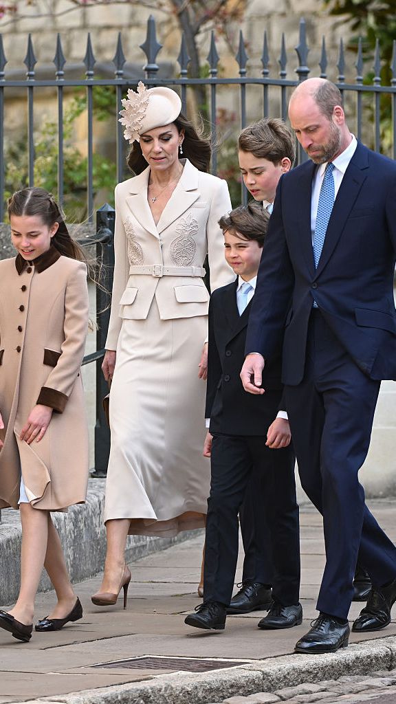 Семейството на Уелс се присъедини към крал Чарлз, кралица Камила и други членове на кралското семейство за годишната великденска служба. Тази година се навършиха четири години, откакто принц Джордж и принцеса Шарлот за първи път присъстваха на службата през 2022 г. Малкият им брат Луи се присъедини към тях през 2023 г., преди семейството да реши да прекара следващите два великденски празника в уединение.