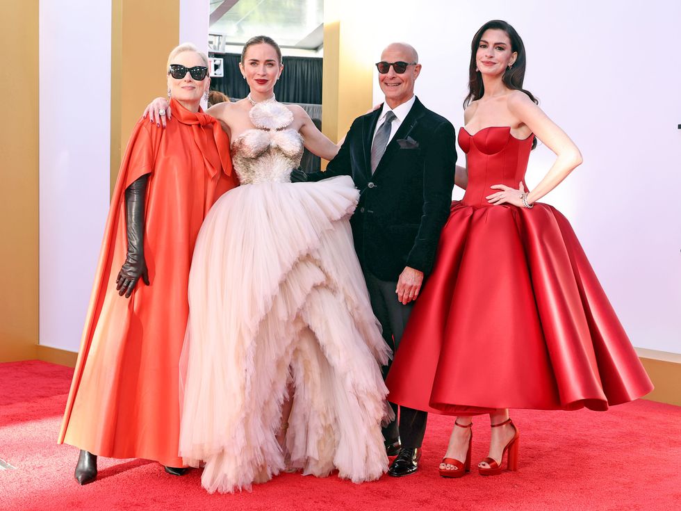 Стенли Тучи, който в реалния живот е женен за сестрата на Емили Блънт – Фелисити, изглеждаше безупречно в тъмен костюм, съчетан със сива вратовръзка и слънчеви очила.