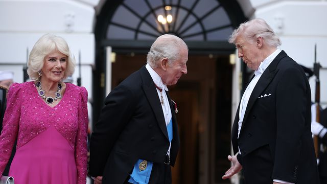 По-късно същата вечер, посрещайки Чарлз и Камила обратно в Белия дом преди бляскавата държавна вечеря, Тръмп и първата дама Мелания топло поздравиха кралската двойка на Южния портик на историческата сграда.